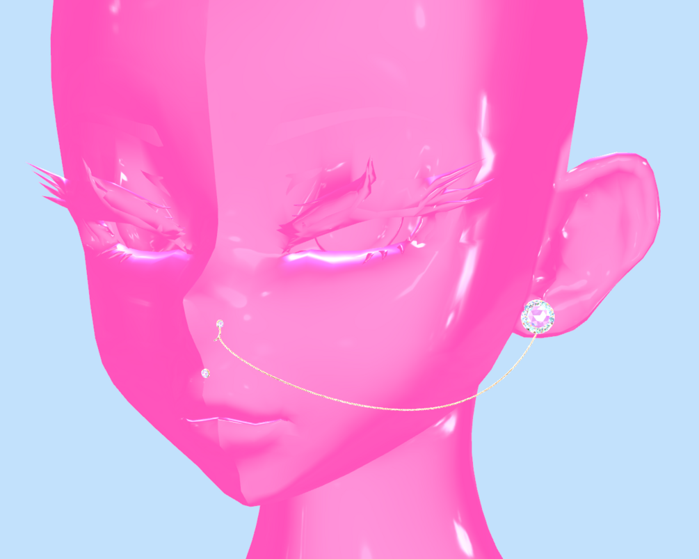 Nose Hoop Piercing with a Nose Chain, Earrings and a Lip Piercing